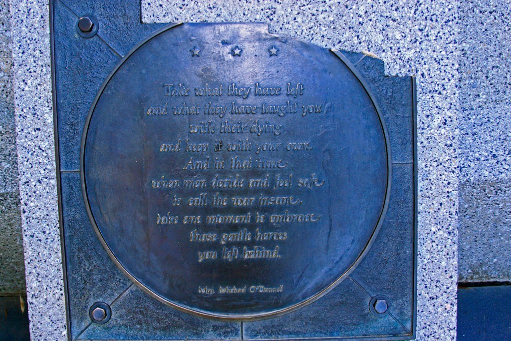 Picture 5 is a tribute to Brien Collins who lost an arm and a leg during his second tour of 'Nam. He went on to serve in government for three governors and as an Assemblyman. He was a driving force in the building of this memorial and is quoted as saying;
