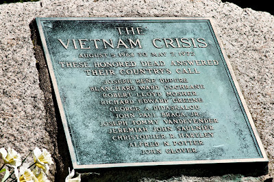 I have written a number of times about how we cannot seem to agree on when this war was fought. The dates one finds on memorials vary widely. I have chronicled beginning dates from 1955 to the late '60's and ending dates from 1973 to 1978! It was with some interest that I noticed that this memorial names the conflict "The Vietnam Crisis", so I guess we will continue to debate that, too. This, of course, is merely a semantic exercise for, perhaps, Lexicographers and Historians; those of us who were there know what it was!