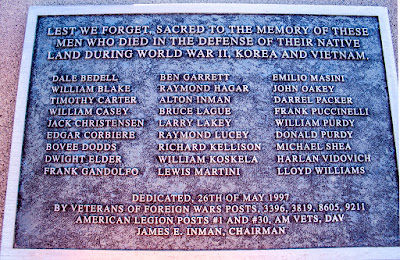 The plaque on the pedestal lists those from various wars that were lost. Eight of these were from Vietnam.